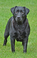 Amber Sky Ethereal's Black Bella, Bella is an excellent representation of a black English type female Labrador. Bella has a classic square, boxy English
