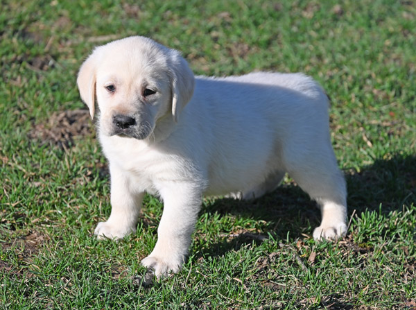He will continue to grow and mature into a strong English Labrador with a calm, loving temperament like his sire and dam. The shade of yellow on this pup is very light in color,