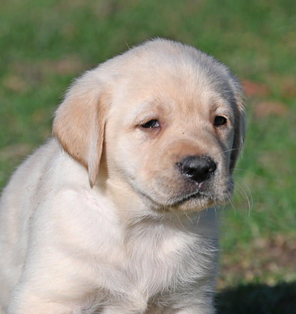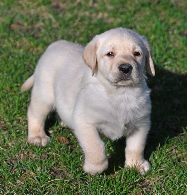 He will continue to grow and mature into a strong English Labrador with a calm, loving temperament like his sire and dam. The shade of yellow on this pup is very light in color,