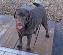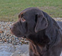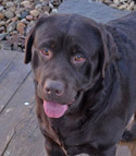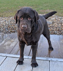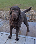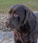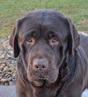 Amber Sky Samson, also known as Samson is a massive English chocolate Labrador stud at Amber Sky Farm. He is broad, muscular