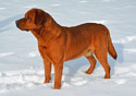 Brandywine's Red Beowulf, Bo, is one of our fox red stud dogs as of December 2024. Bo has a nice dark fox red coat color complimented by dark black pigment around his eyes