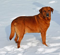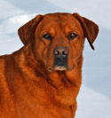 Bo is sired by Bull (Dutchacres Crimson Red Bull) a fox red Labrador that is claimed to be the darkest fox red in