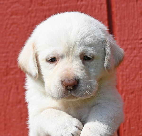 She will continue to grow and mature into a strong English Labrador with a calm, loving temperament like her sire and dam. The shade of yellow on this pup is very light in color,
