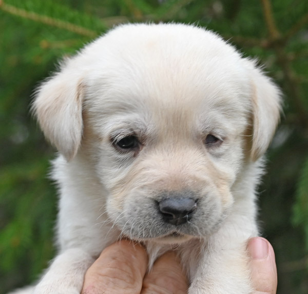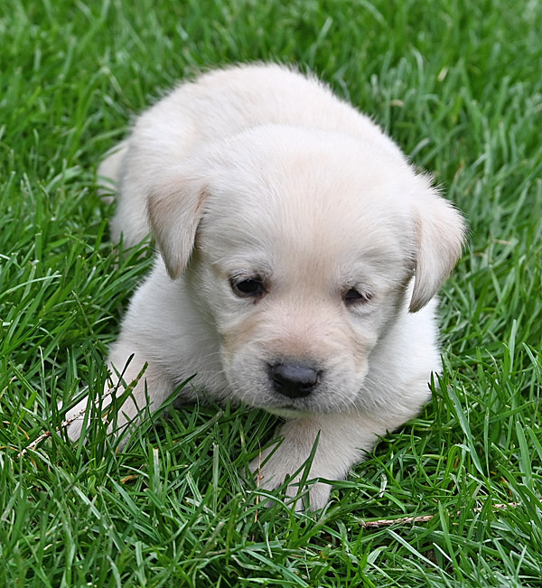He will continue to grow and mature into a strong English Labrador with a calm, loving temperament like his sire and dam. The shade of yellow on this pup is very light in color,
