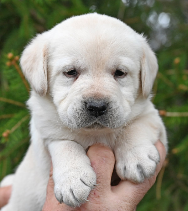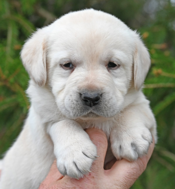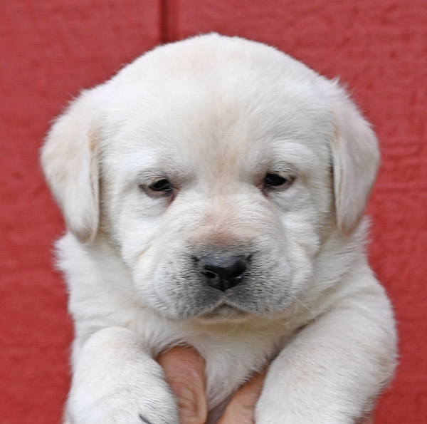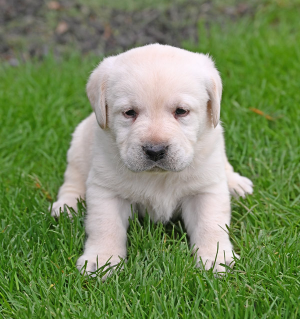 He will continue to grow and mature into a strong English Labrador with a calm, loving temperament like his sire and dam. The shade of yellow on this pup is very light in color,