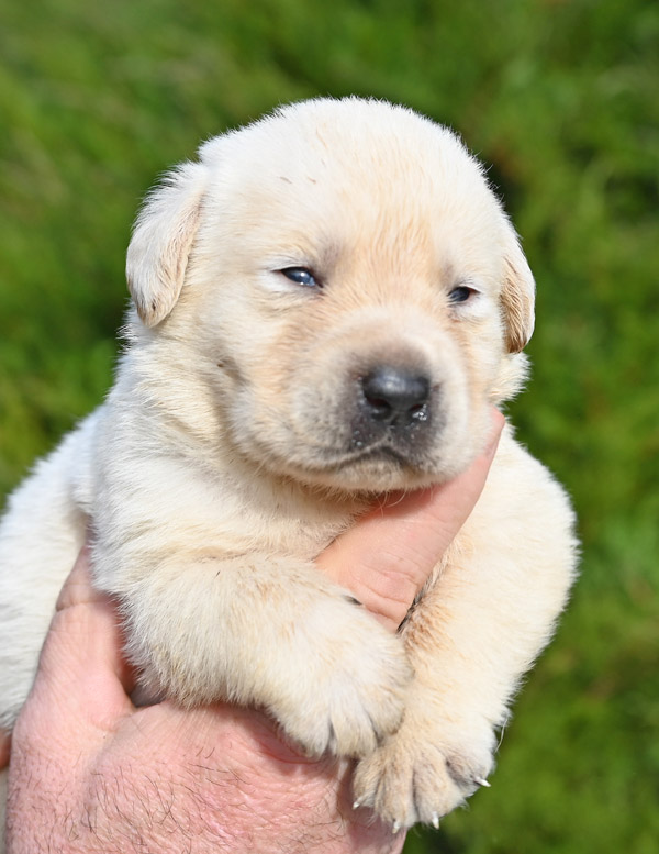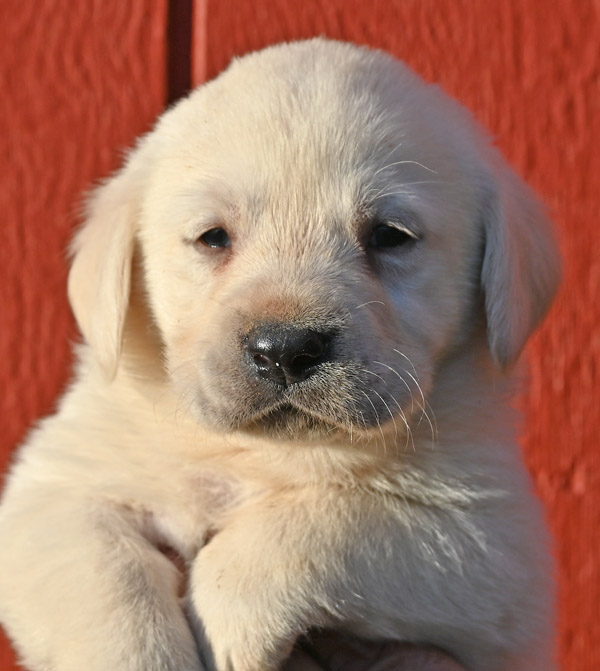 He will continue to grow and mature into a strong English Labrador with a calm, loving temperament like his sire and dam. The shade of yellow on this pup is very light in color,