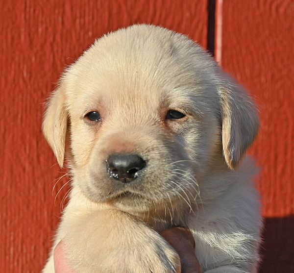 Pictured is the available yellow male pup out of the Norse and