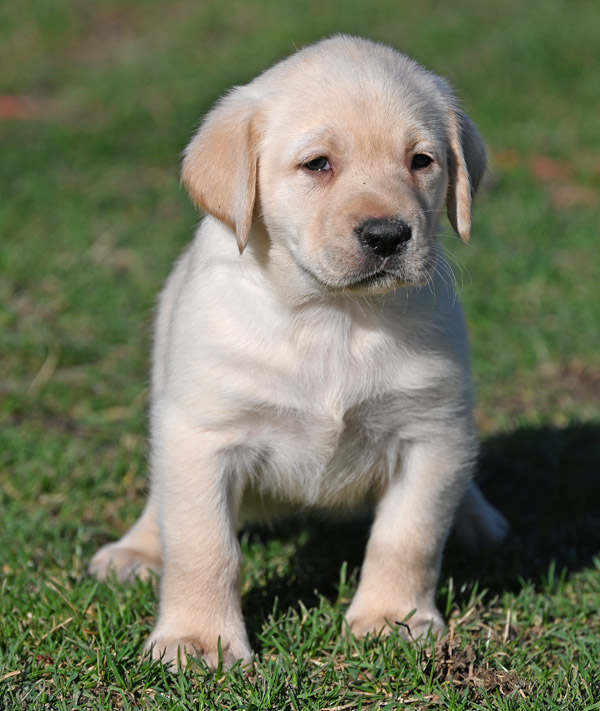 He will continue to grow and mature into a strong English Labrador with a calm, loving temperament like his sire and dam. The shade of yellow on this pup is very light in color,