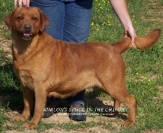 Avalon's Stuck in the Chimney, also known as Emma, is an English type fox red female Labrador. She is the dam of our own