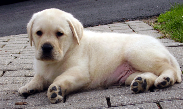 Neko is a light to medium yellow 'English' yellow male Labrador whelped at Amber Sky Labradors on