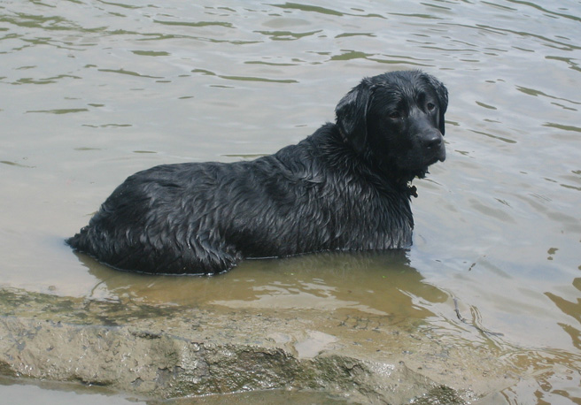2 year old yellow lab, Hunter. They are best friends! He is a great swimmer and loves
