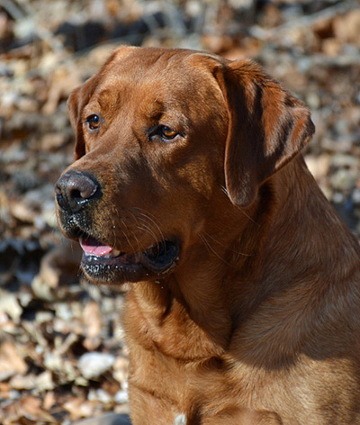 Highland's Titus Steel JH, Titus, is a well bred English type fox red male that excells as a companion toour family and in the field retrieving downed ducks, geese, and flushing pheasants. He came to us from Highland Labradors located in Akron, Ohio where he was bred and born. Titus was sired by an American Kennel Club, Master Hunter, Nitro (Nitro Steel Hughes MH) and whelped by Juno (Keepsake's Marilyn Monroe of Highland). Titus is a strong, well muscled Labrador with a solid amount of bone, a nice height, and a boxy, square head that is complimented by the soft kind expression communicated through his eyes. He has a very dark fox red coat with short hair that is always soft and has a brilliant sheen when the sun shines on it. He is a very athletic Labrador in that he has a significant amount of drive to retrieve either out of the water or over land. That drive is what enabled Titus to earn his Junior Hunter certificate through the American Kennel Club and the title of Hunting Retriever awarded by the United Kennel Club.
