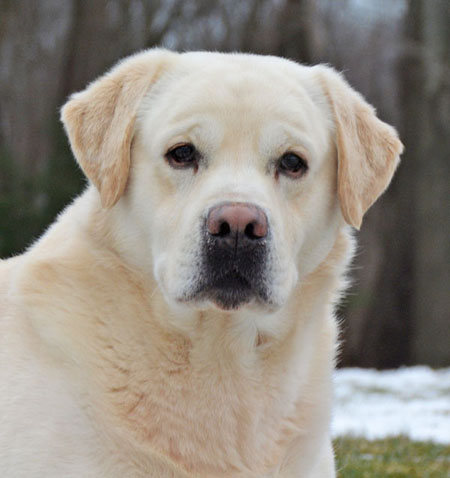 Rumajas Amber Sky Sugar Turk, Turk, is one of our light yellow, almost white in color English type Labrador studs.